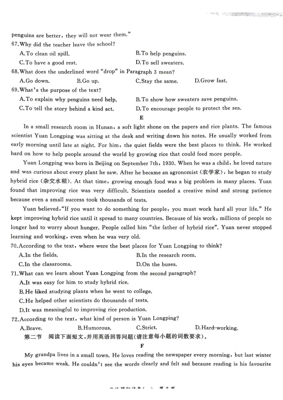 ●河南近十年中考英语书面表达真题及范文汇总(2014-2024)