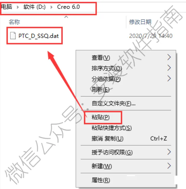 28.打开D盘下《Program Files》文件下的《PTC》文件夹,在空白处鼠标右击选择《粘贴》