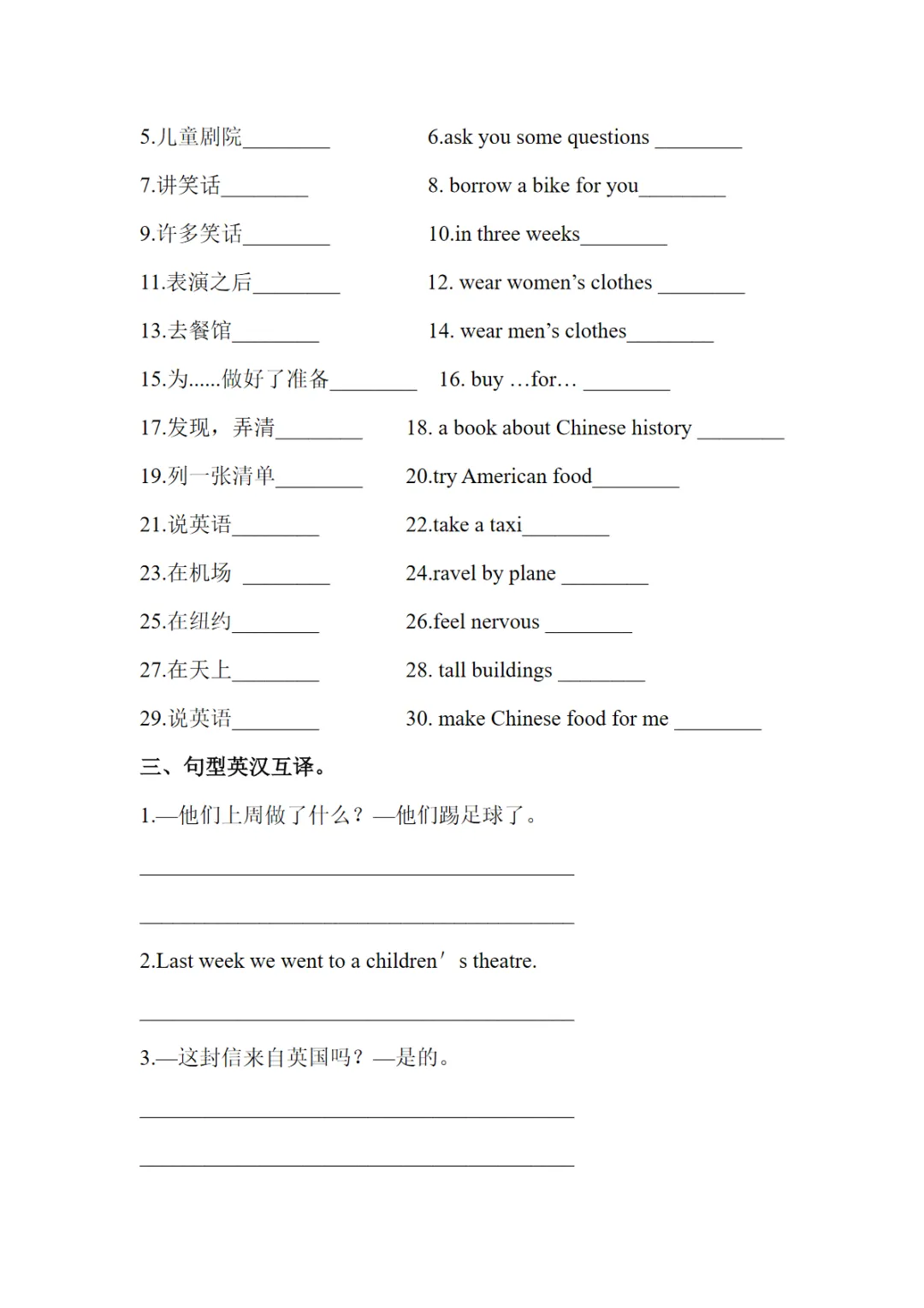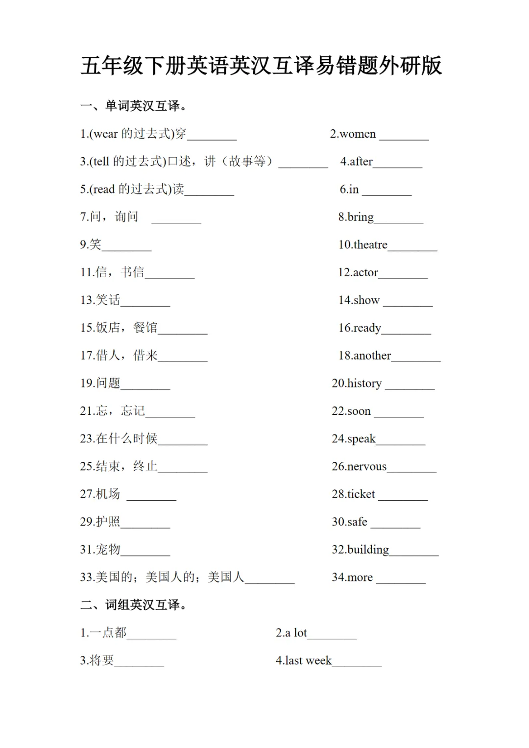 【免费下载】五年级(下)英语 英汉互译易错题《外研版》,PDF电子版,共6页,先保存,以免资源失效