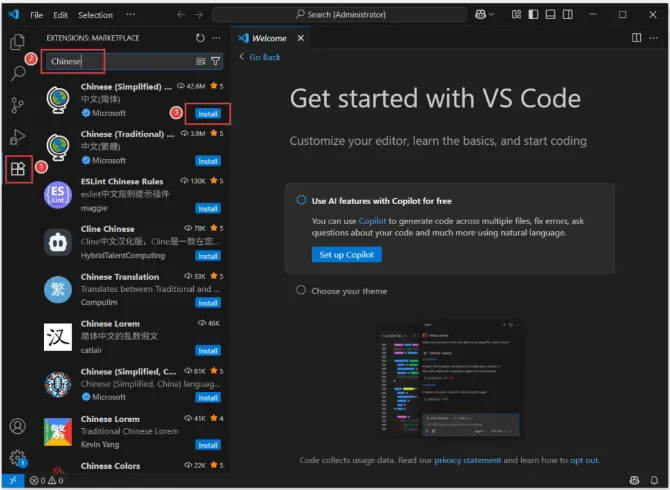 3.选中【Setup】程序,鼠标右键选择【以管理员身份运行】。5.修改安装路径:可以把地址栏首字母C改成D,代表软件会安装到D盘,选择好点击【下一步】。(自行选择安装路径即可,但安装路径和文件夹不要有中文)11.先点击【商店图标】,在框内输入【Chinese】然后点击简体中文右边的【Install】。12.点击右下方【Change Language and Restart】。到这里,VScode的安装就完成啦,整体安装步骤还是挺简单的,有需要的朋友可以下载使用。关注“阿荣很忙”,一个意想不到的软件库。