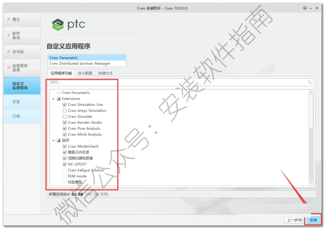 18.选择需要的应用程序,然后点安装