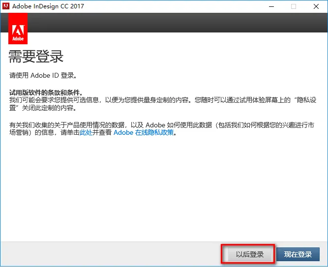 解压前请关闭杀毒软件,参考下面安装步骤即可! 注: InDesign安装步骤大体相同,大家参考下面安装步骤即可。 温馨提示:找大叔远程安装享不限速下载,快速安装,省时省力,自己安装要花五六个小时甚至更多,影响您宝贵的时间(大叔所有远程安装均提供90天独家售后服务) 这个版本需要断网安装,不断网也可以安装,但是需要登录Adobe账号。有账号登录,没有账号注册一个即可。 1、鼠标右键解压到“InDesign CC 2017” ![]() 2、双击打开【InDesign CC 2017】文件夹