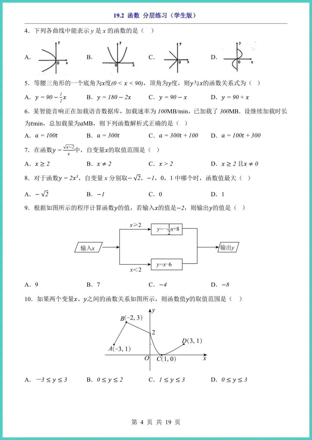 【免费下载】八年级(下)数学19_2_函数_分层练习(冀教版) | PDF完整高清电子版可打印