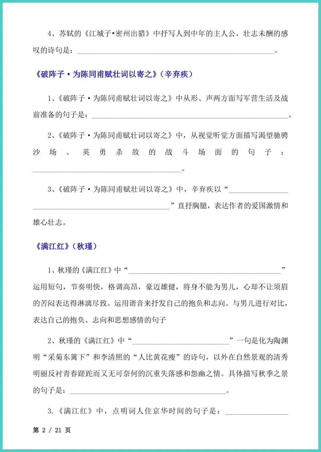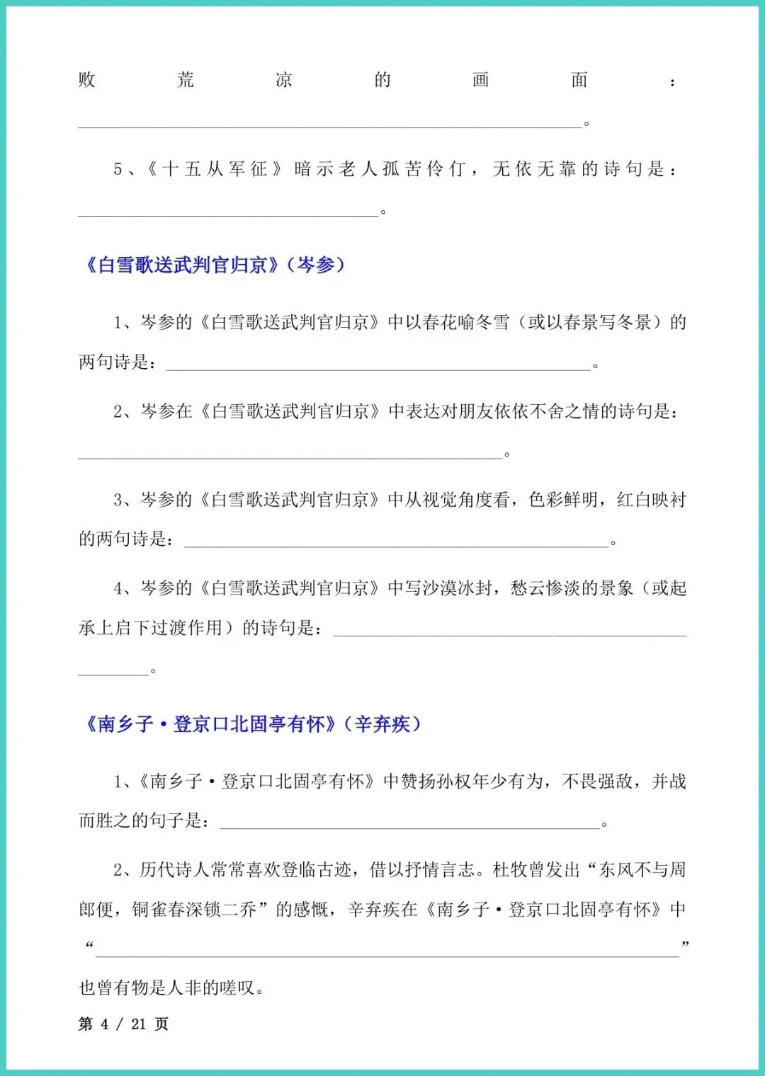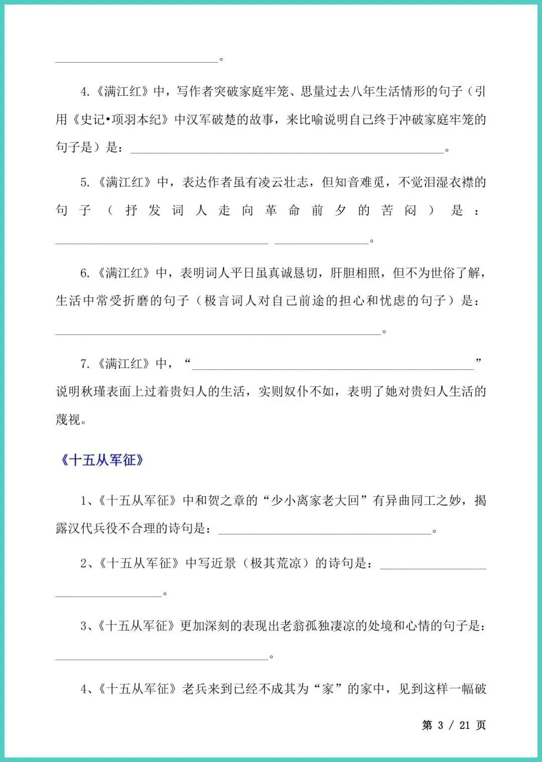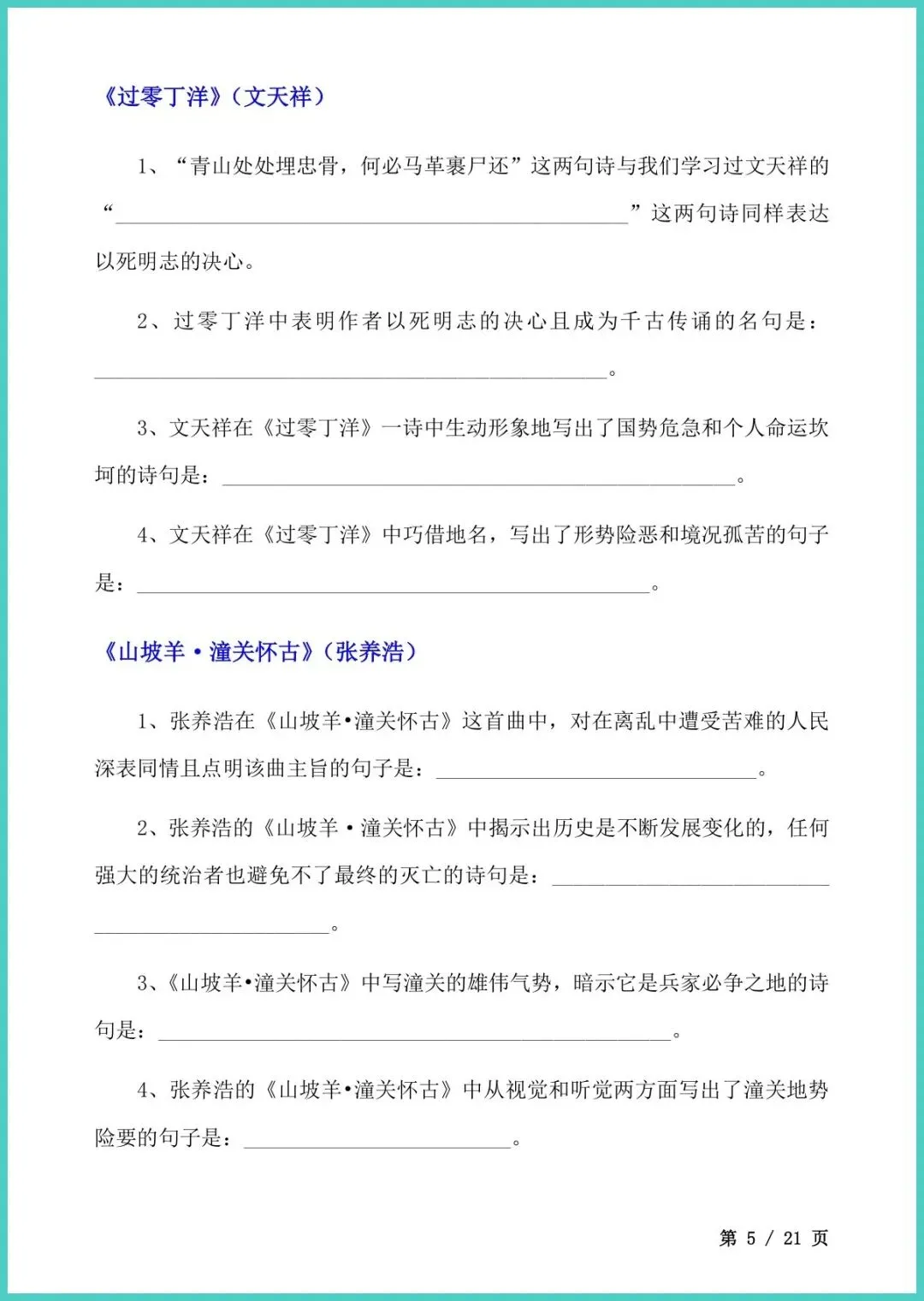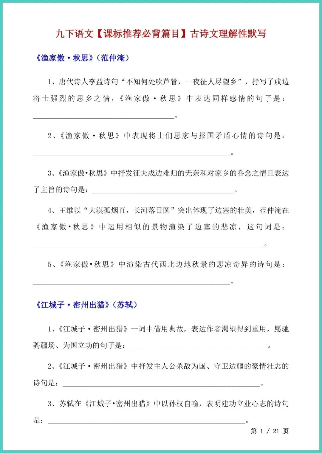 【免费下载】九年级(下)语文_古诗文理解性默写 | PDF完整高清电子版可打印