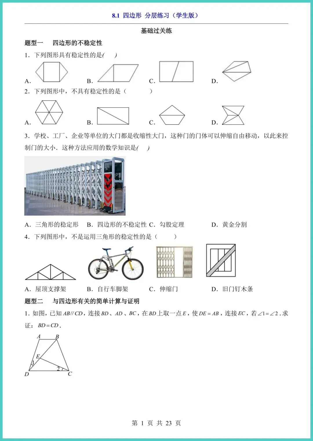 2026春青岛版八年级下册数学《8.1四边形分层练习》新鲜出炉,整整23页干货!基础、进阶、拔高三级分层,典型例题变式训练易错点睛,配详细答案与思路点拨,孩子课后10分钟就能精准补弱,图形判定、性质应用一次练透,成绩稳上新台阶!家有八年级娃的家长,赶紧打印一份,让孩子先练先赢!