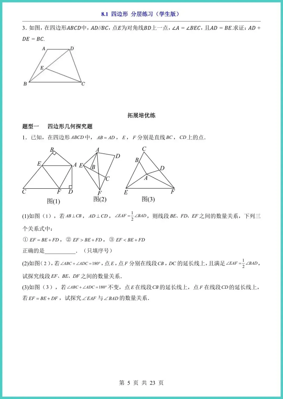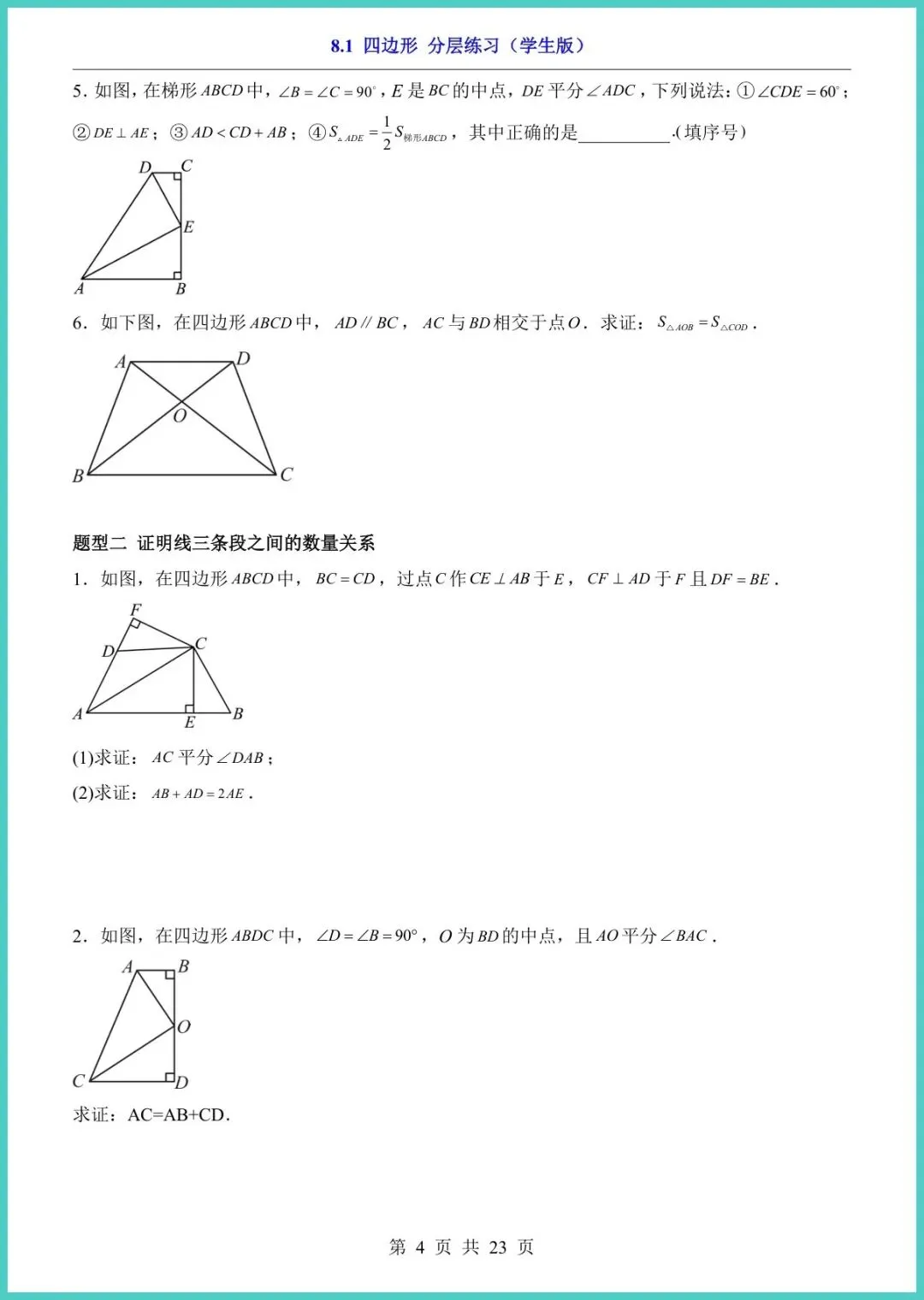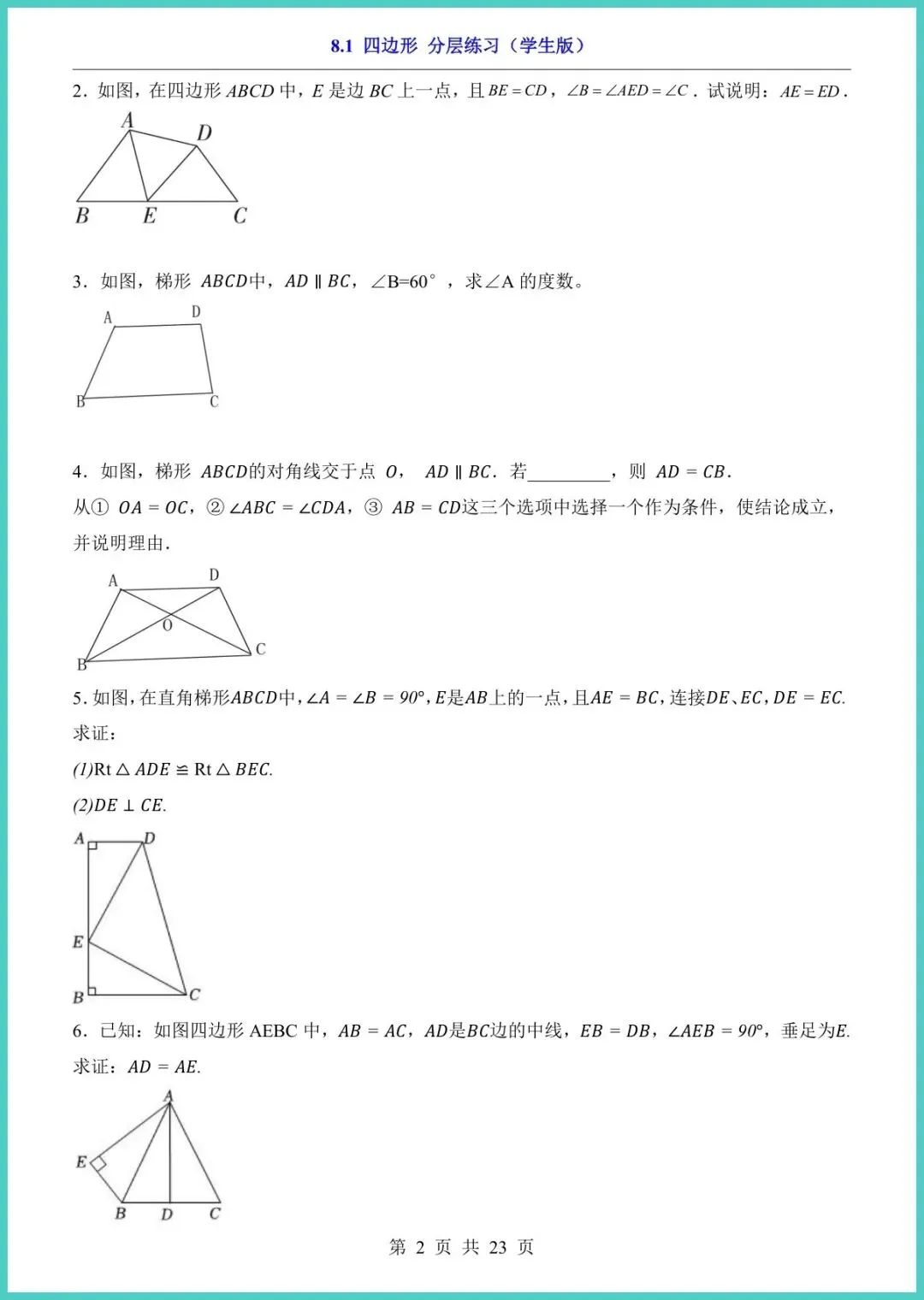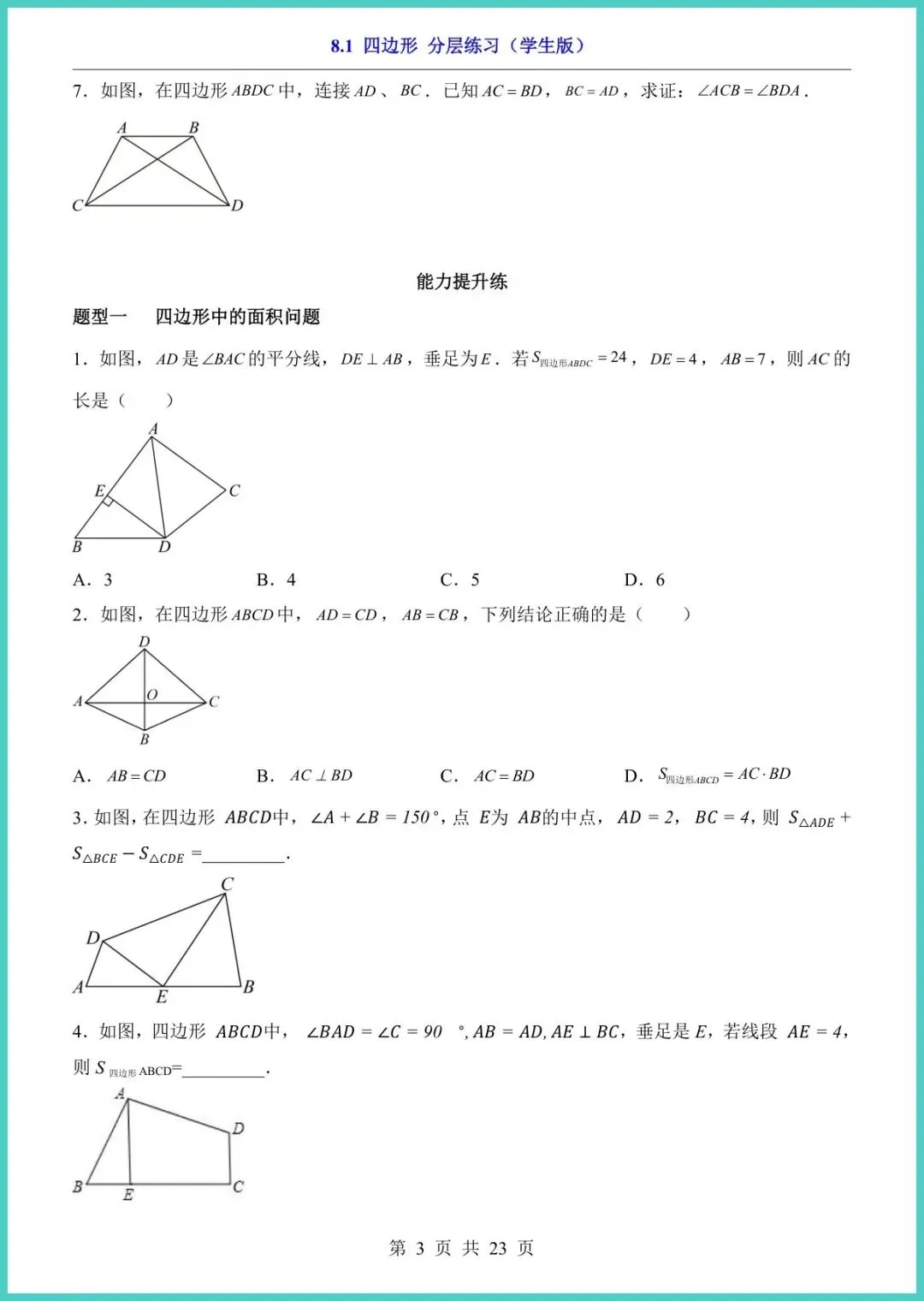 【免费下载】八年级(下)数学8_1_四边形_分层练习(青岛版) | PDF完整高清电子版可打印