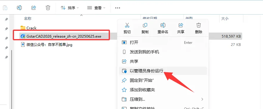 2、以管理员身份运行浩辰CAD 2026安装主程序。