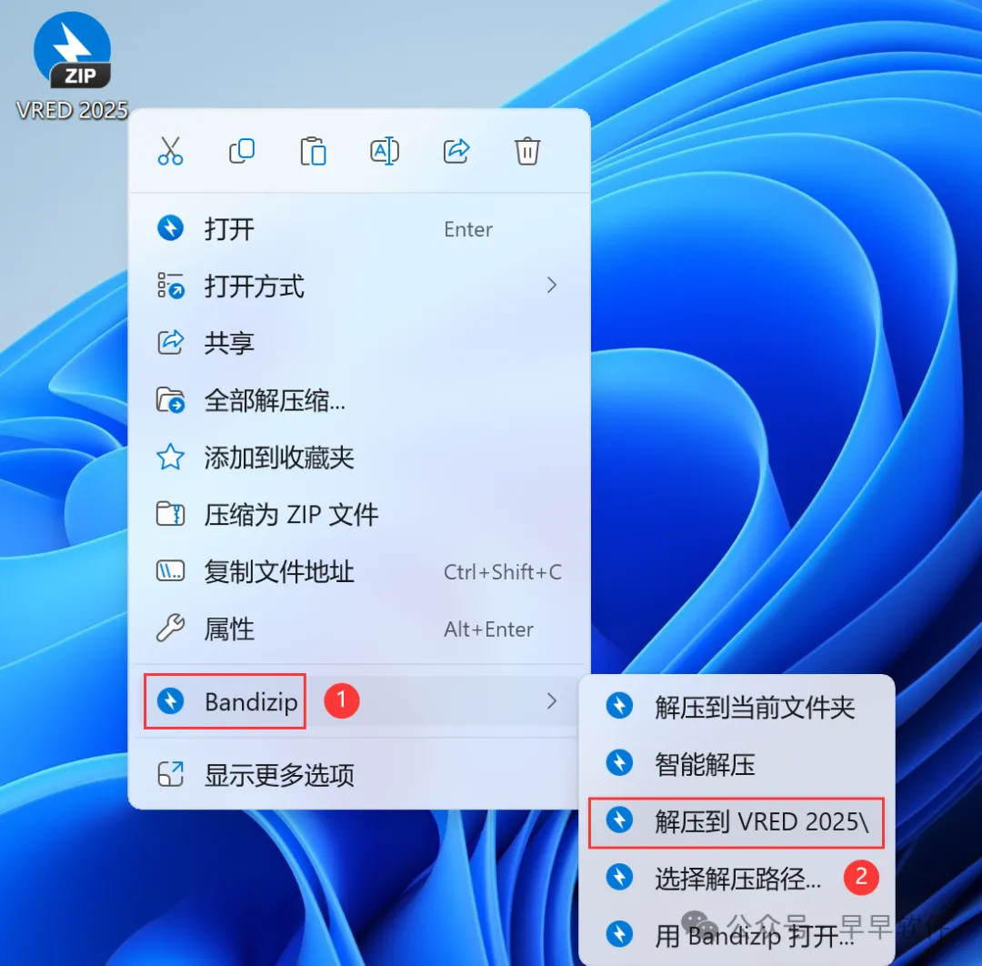 1、下载VRED 2025软件安装包到电脑上,右键选择【解压到VRED 2025\】