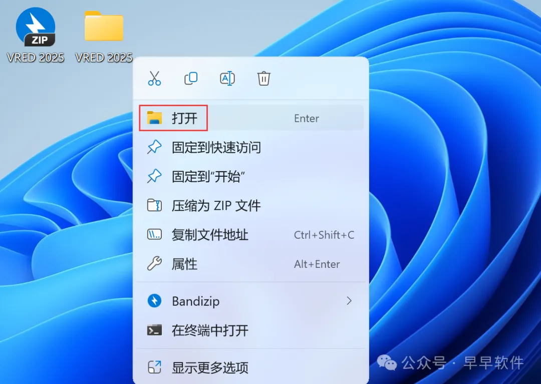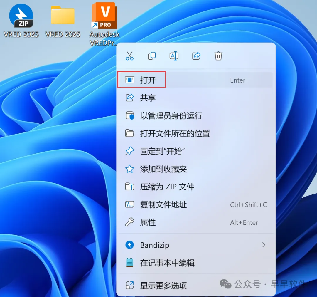 15、回到桌面,右键桌面上的【VRED 2025软件图标】,点击【打开】