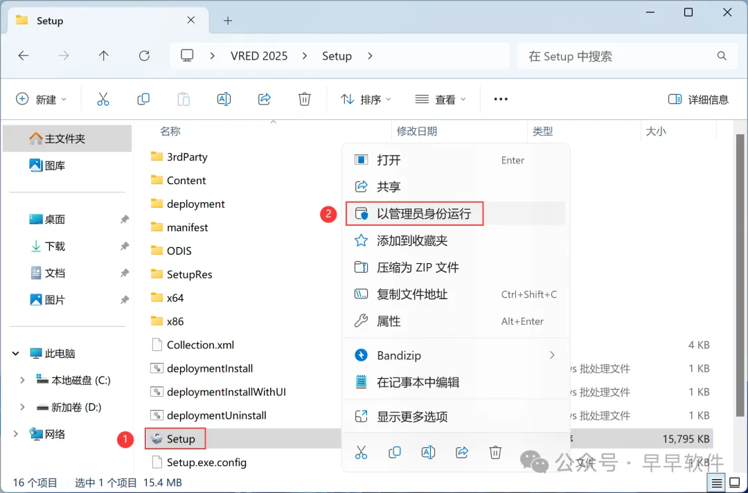 4、找到【Setup】应用程序,右键选择【以管理员身份运行】它