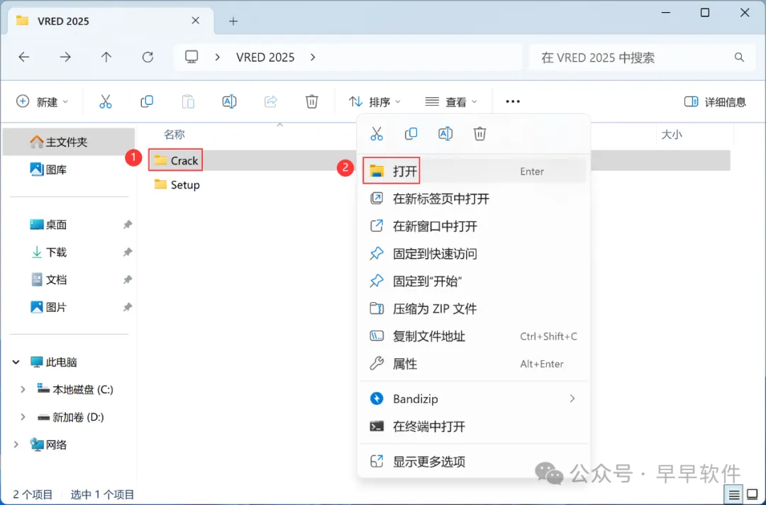 10、回到VRED 2025文件夹,找到【Crack】文件夹,右键【打开】它