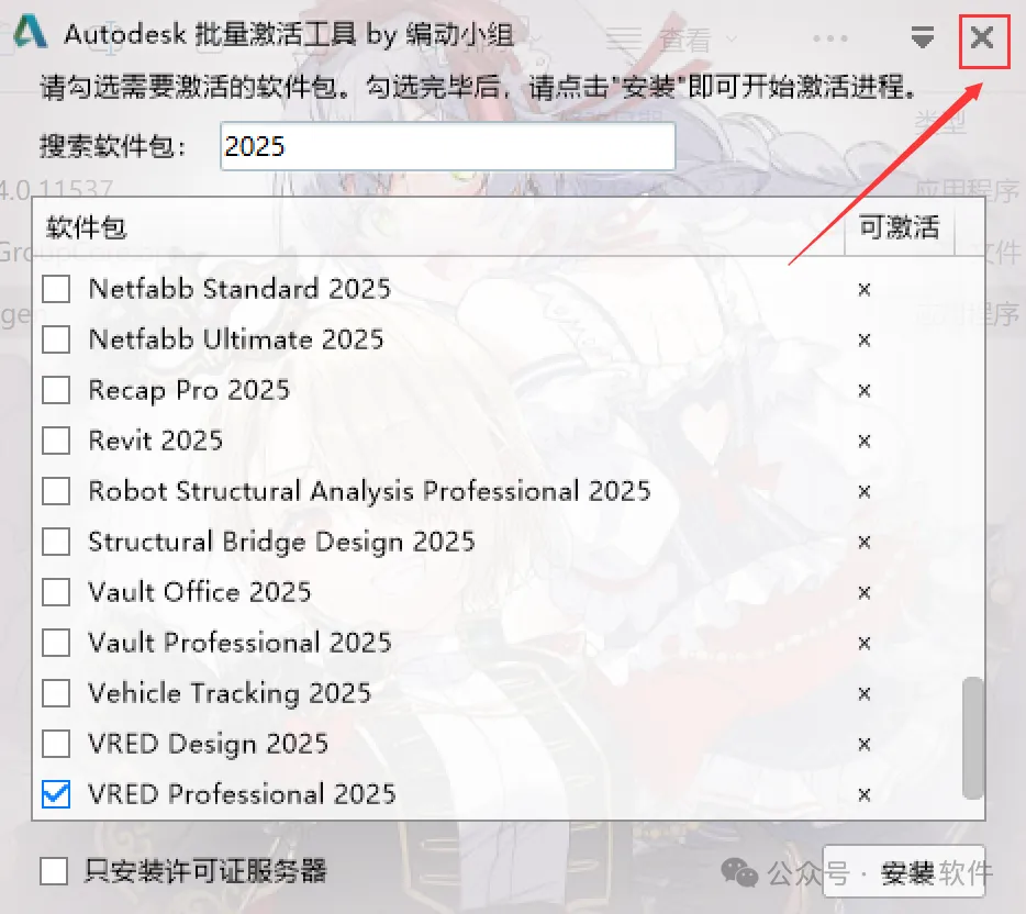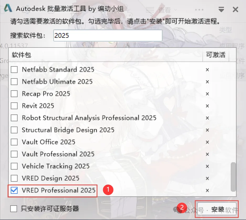 12、找到并选中【VRED Professional 2025】程序,再点击【安装】