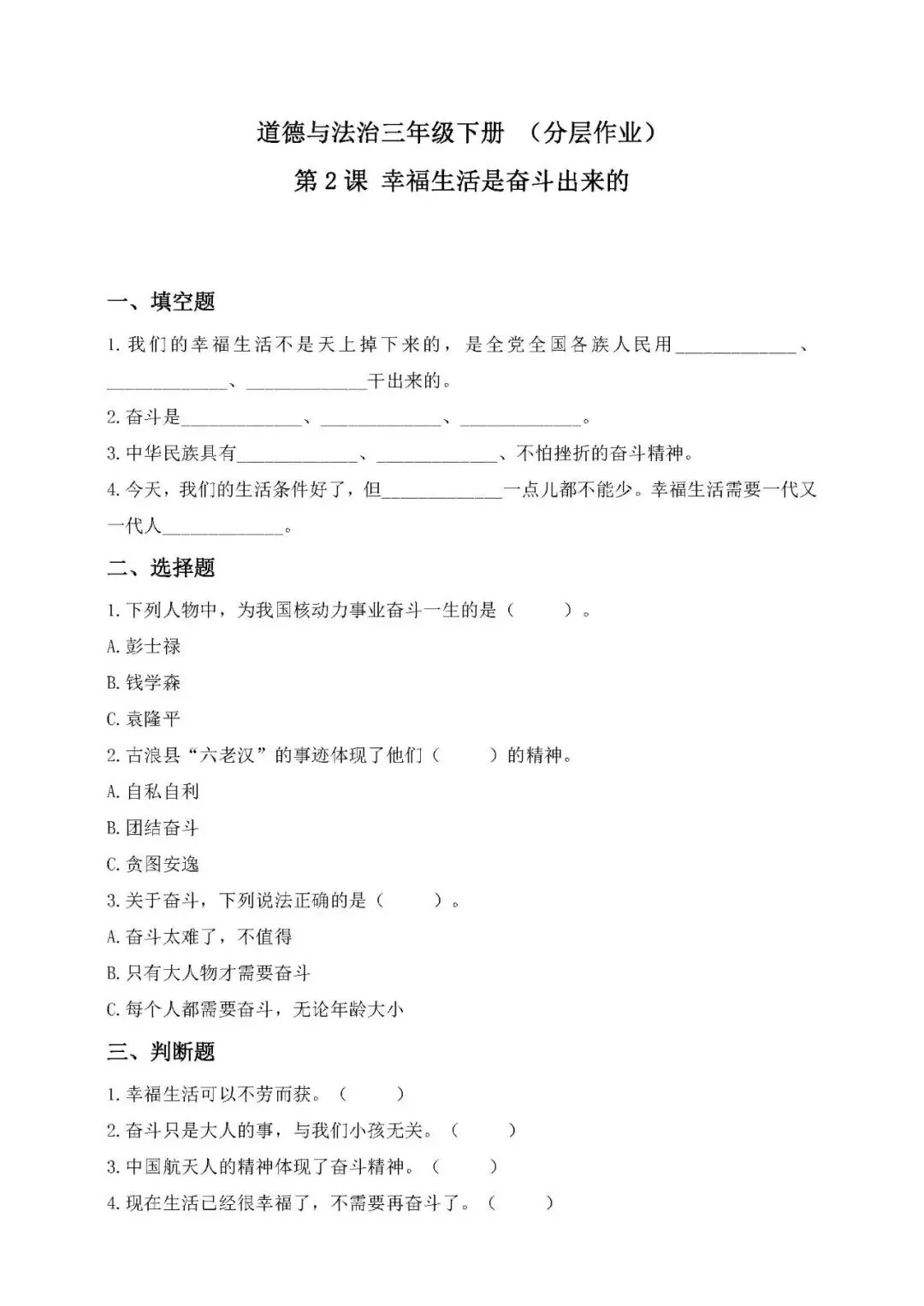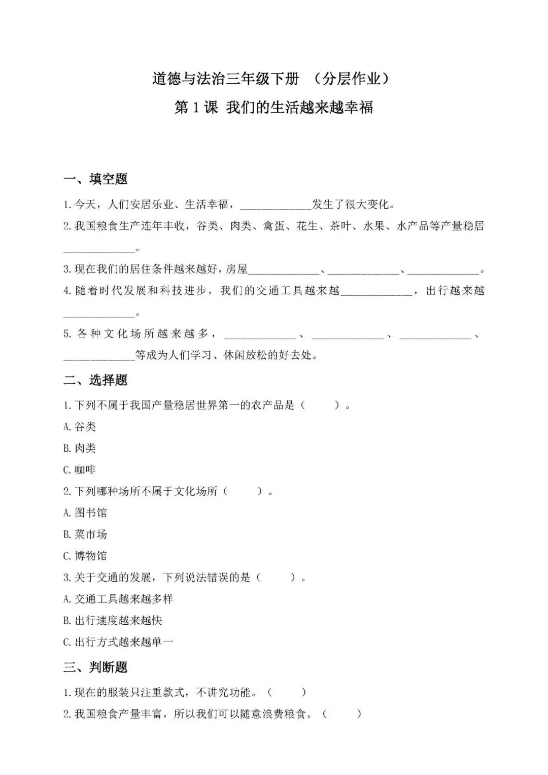 【免费下载打印】2026春三下道法第1-12课(分层作业,含答案),PDF电子版,先保存后下载