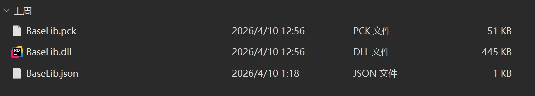 这就是MOD文件的最常见形式,一个.json,一个.dll,一个.pck文件,其中: