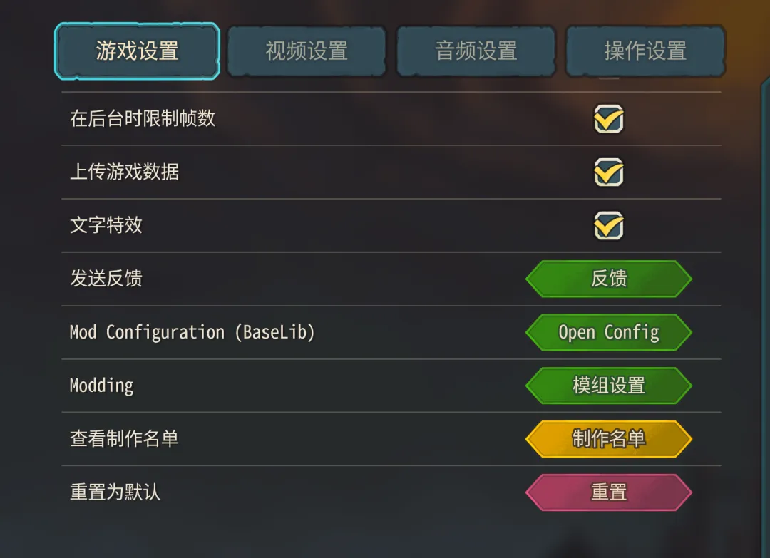 进入游戏设置页面,在下方可以新加了一些选项,选择模组设置。