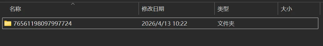 然后打开这个文件夹后,你会看到一个由一长串数字命名的文件夹。