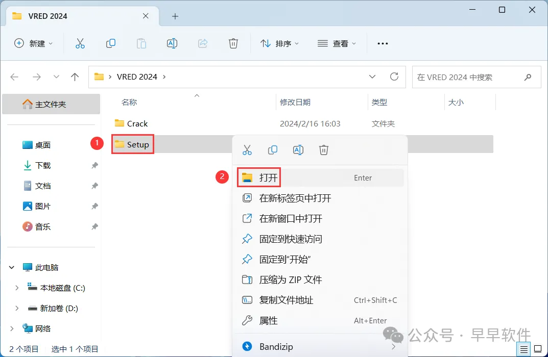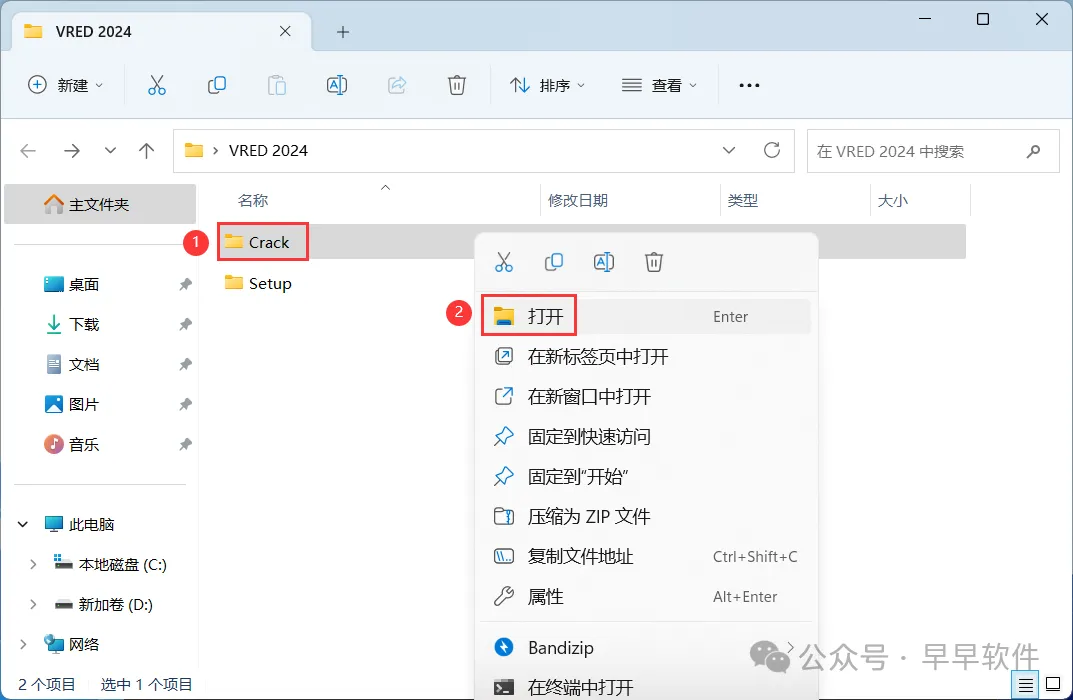 9、回到VRED 2024文件夹,找到【Crack】文件夹,右键【打开】它