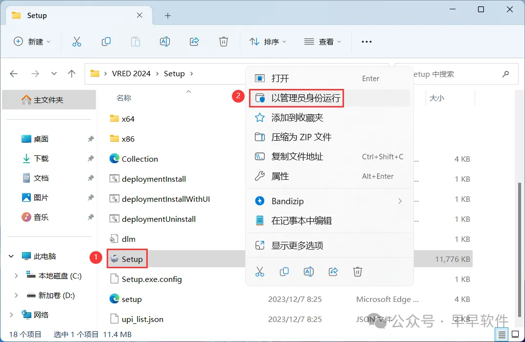 4、找到【Setup】应用程序,右键选择【以管理员身份运行】它