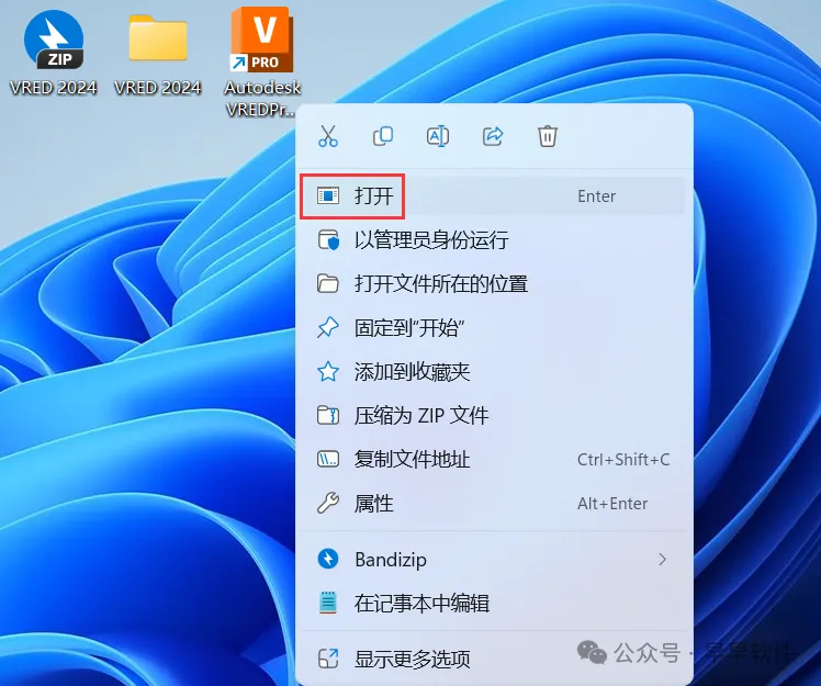 12、回到桌面,右键桌面上的【VRED 2024软件图标】,点击【打开】