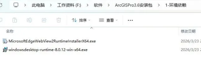 ArcGIS Pro 3.6 依赖.NET 8.0 Desktop Runtime。若尚未安装,双击运行 windowsdesktop-runtime-8.0.12-win-x64.exe⚠️注意:仅安装 .NET 9 或更高版本不满足要求,必须使用 .NET 8.0.x。第二步:运行 ArcGIS Pro 主程序安装