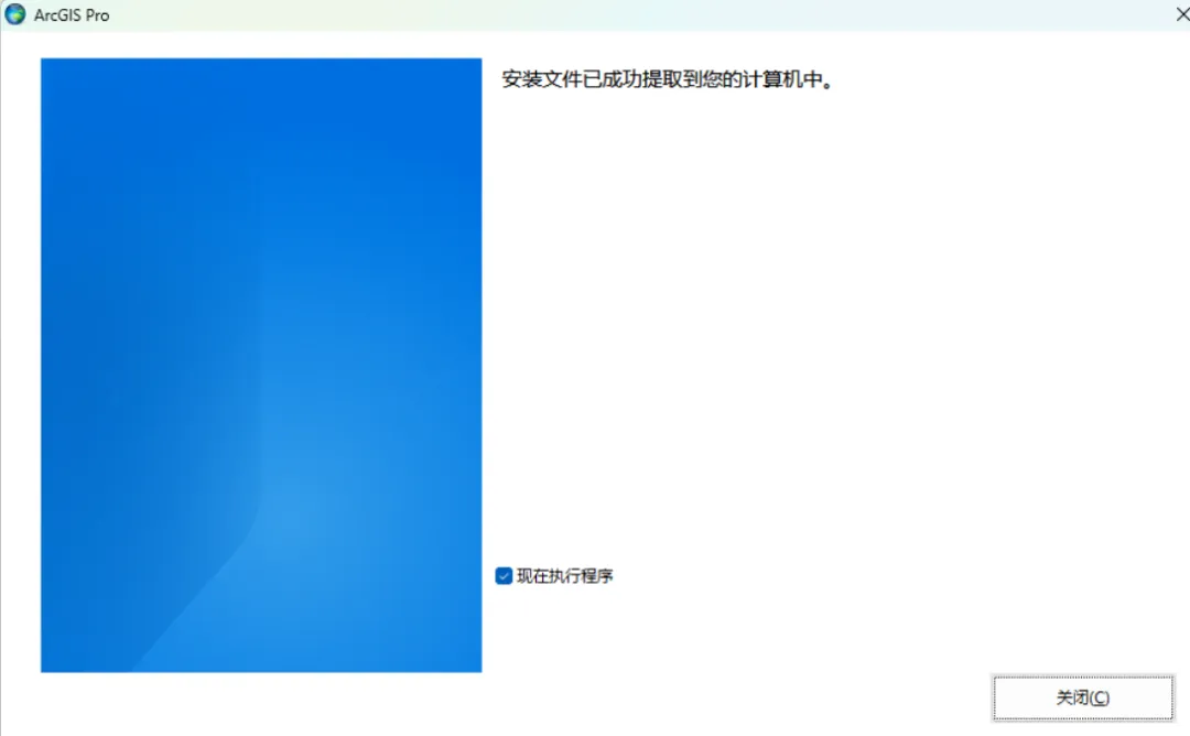 双击安装包(如 ArcGISPro_36_zh_CN_197401.exe),接受文件提取的默认位置,或单击“浏览”自定义。点击“下一步”。提取完成后,默认勾选“启动安装程序”,点击“关闭”进入正式安装。第三步:选择安装选项