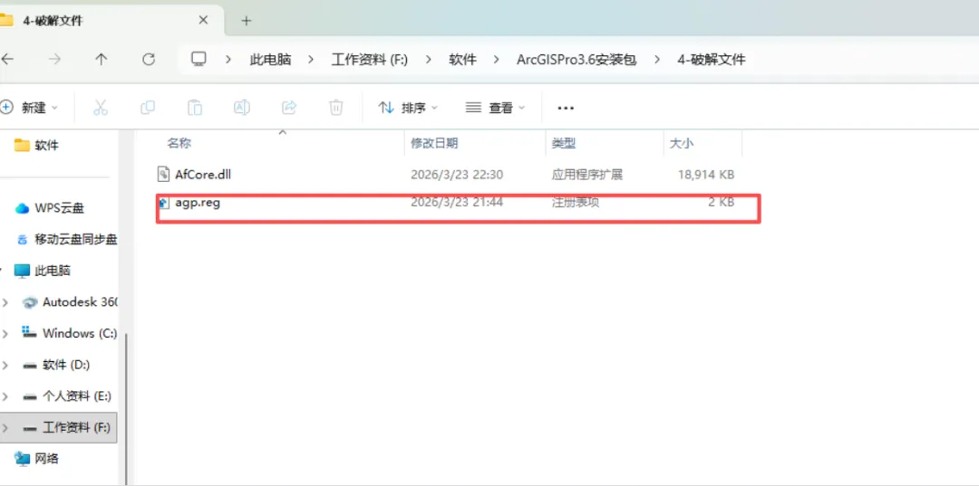 打开”4.破解文件“文件夹,双击运行”agp.reg“添加注册表文件。