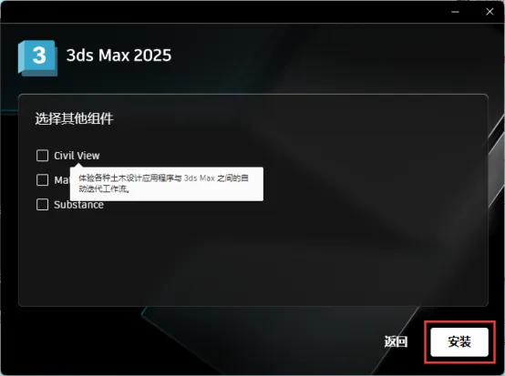 4.【根据自己的需求选择是否安装其他组件】点击【安装】