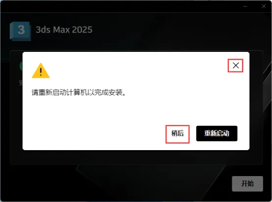 5.点击【稍后】也可以直接重启