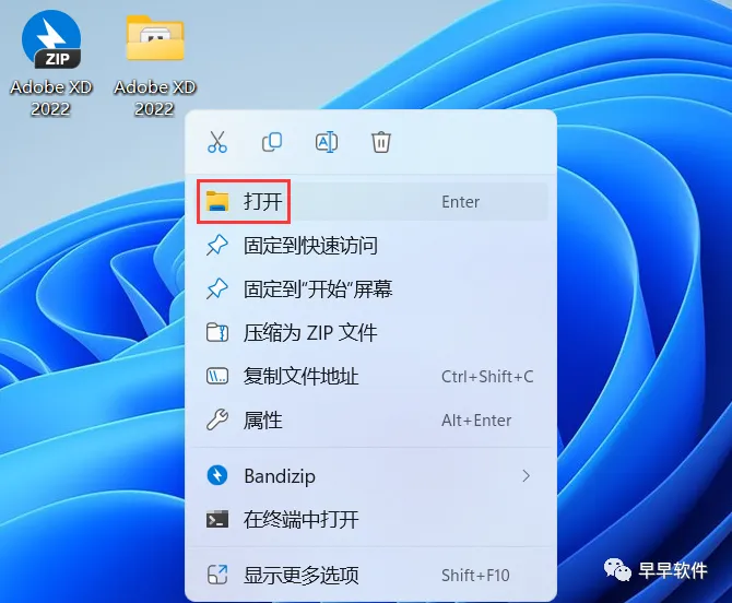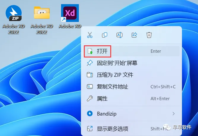 8、回到桌面,右键桌面上的【Adobe XD 2022软件图标】,点击【打开】