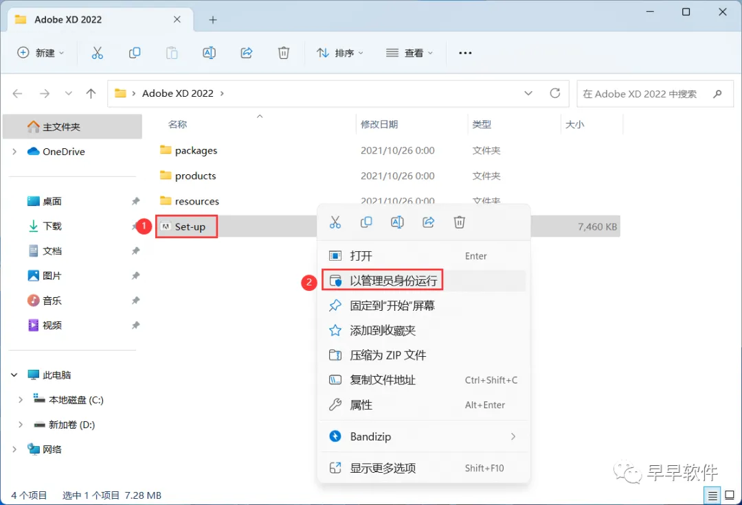 1、下载Adobe XD 2022软件安装包到电脑上,右键选择【解压到Adobe XD 2022\】