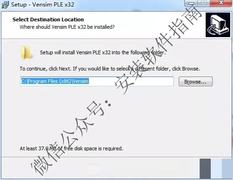 4.设置安装目的地,默认的是C:\Program Files (x86)\Vensim,如需修改点browse