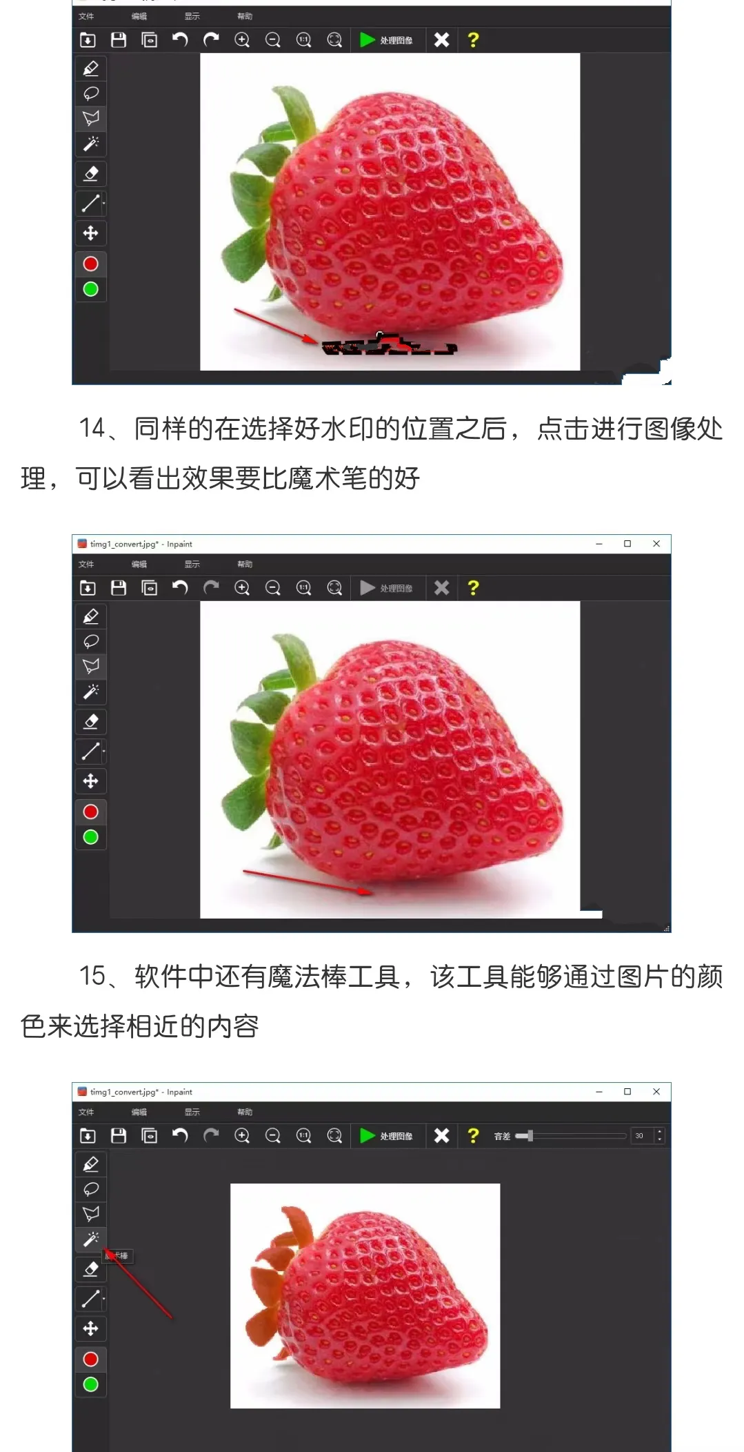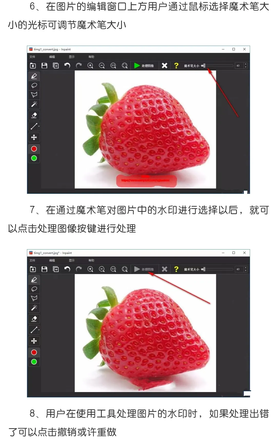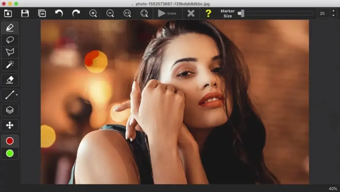 1. 一键去水印,干净无痕迹(主打王牌):这是最常用的功能,不管是图片上的文字水印、logo、日期戳,还是下载素材上的广告水印,用软件自带的魔术笔或套索工具,大致圈出区域,点击处理,软件就会自动分析周边像素,智能填充空白,修完看不到一点涂抹痕迹,比手动抠图快10倍,尤其适合纯色、简单纹理背景。而且它不是简单模糊覆盖,而是靠先进的内容感知填充算法,还原图片原本质感,避免出现“假白块”。