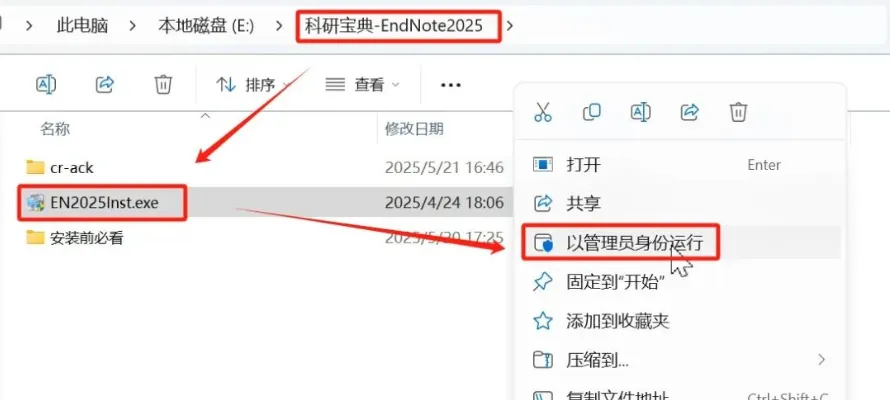 1、下载“科研宝典-EndNote2025”压缩包至电脑本地,并将其解压。以管理员身份运行“EN2025Inst.exe”文件;