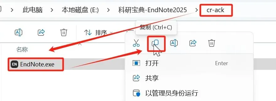 11、打开文件夹中的“cr-ack”文件夹,复制“EndNote.exe”文件;