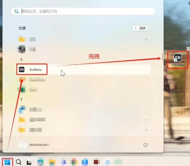 13、全部应用里找到安装完成的EndNote软件,拖拽至桌面,生成快捷方式;
