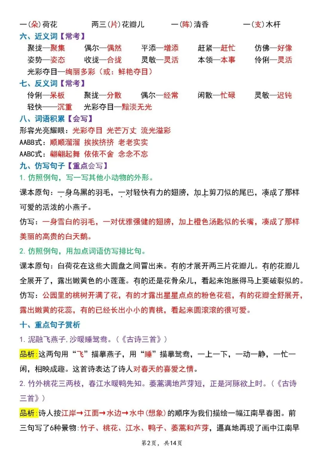 🌸「26春1-6年级(下)语文期中复习14天冲刺 」