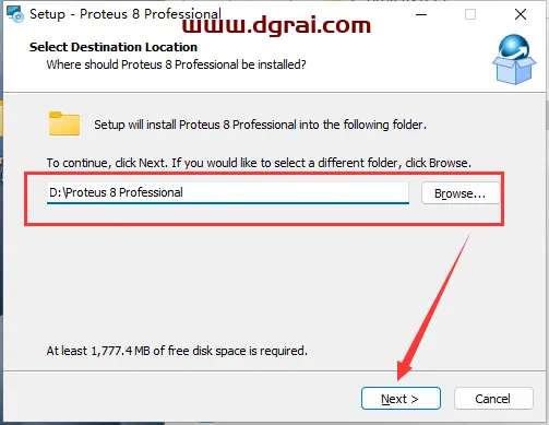 8、后退一个安装位置至Proteus 8 Professional