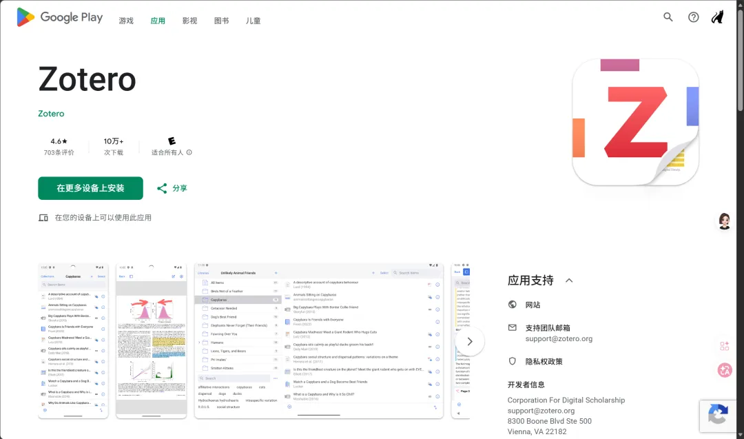 能访问 Google Play 的同学,搜索 “Zotero” 直接安装。因为是官方签名,系统不会报风险,后续也能跟着 Play 自动更新。
