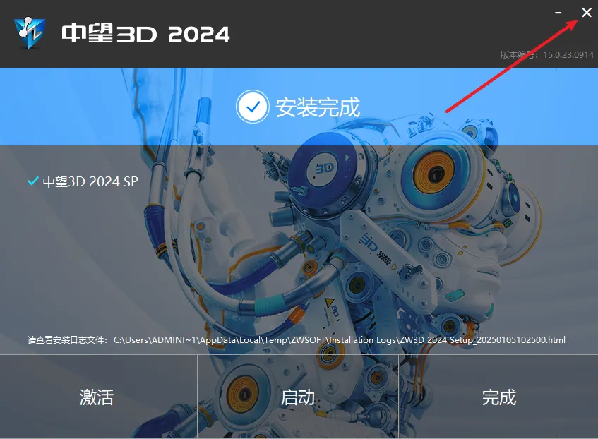 4.等待安装进度条完成,点击右上角【关闭】退出。