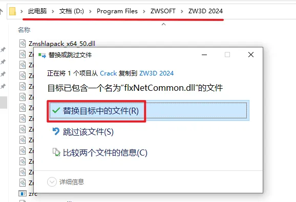 9.粘贴复制的文件到该路径下,选择“替换目标中的文件”