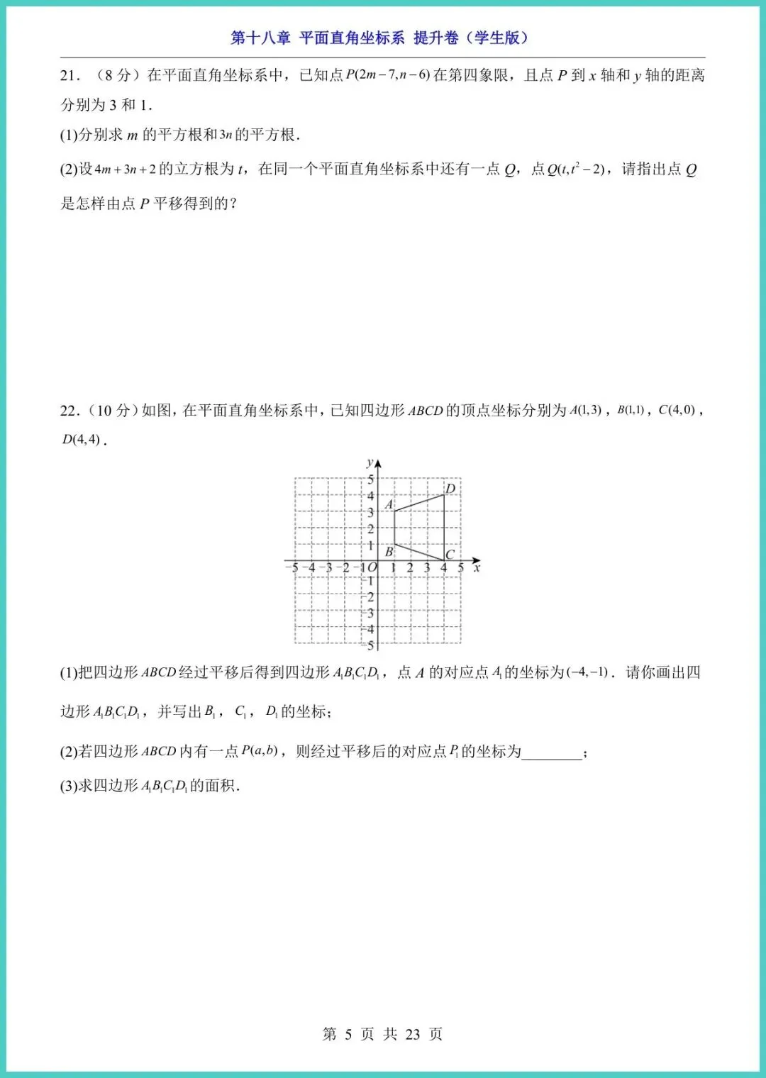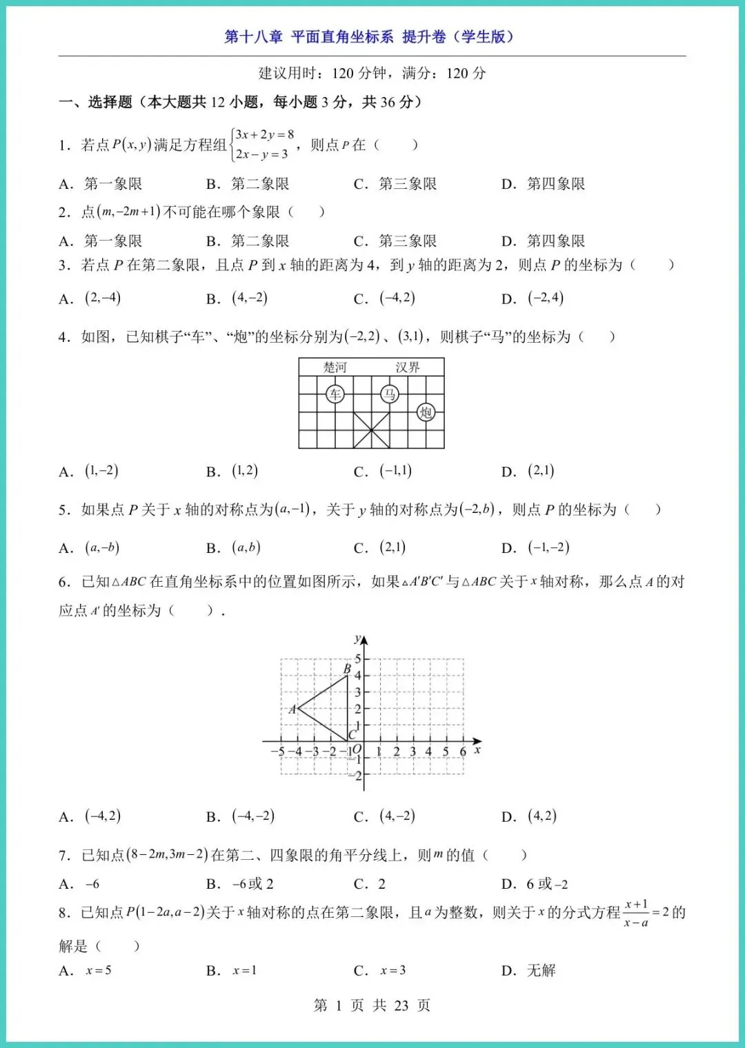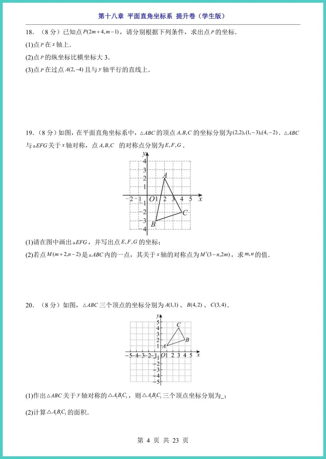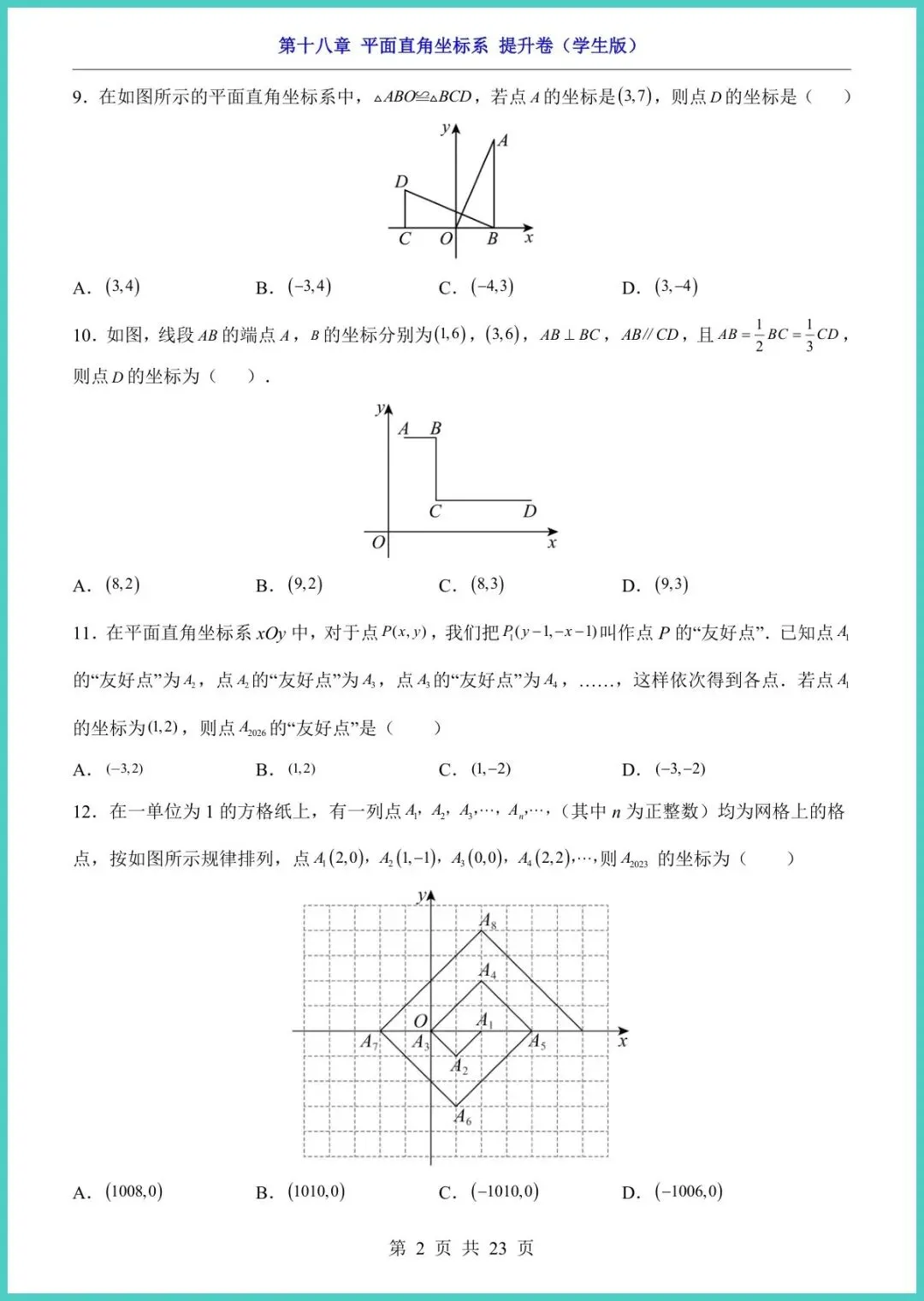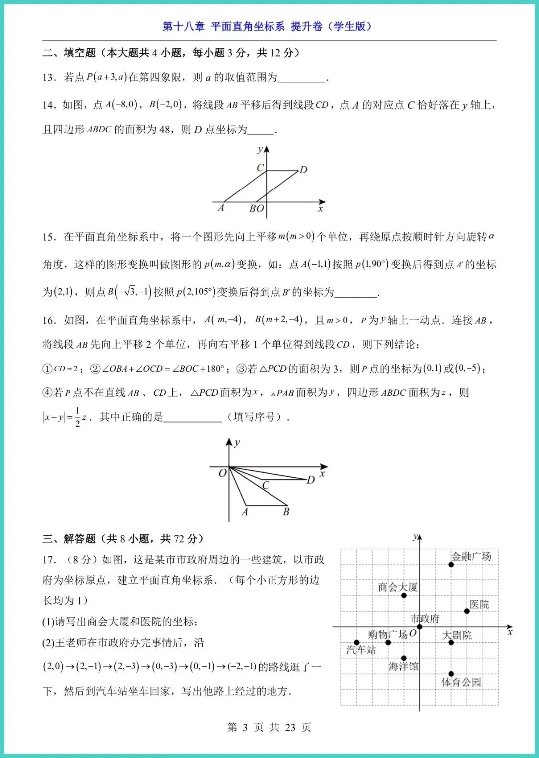 24春冀教版八年级下册数学第18章《平面直角坐标系》提升卷新鲜出炉!23页精编,电子版一键直打。题型涵盖坐标描点、象限判断、距离公式、动点轨迹等高频考点,配梯度拔高题+易错警示+答案详解,帮孩子把“坐标”变“坐票”,考场稳拿附加分!想让孩子空间思维开挂、期中多拿15分?现在就打印,今晚练起来!