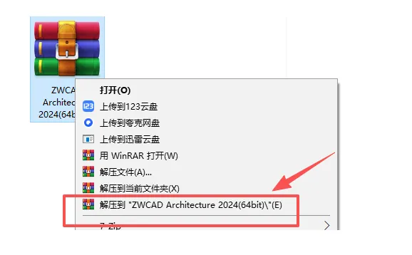 ③ 点击【解压到 ZWCAD Architecture 2024(64bit)】