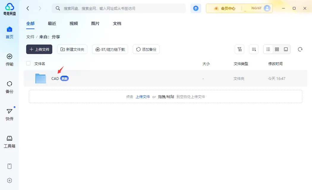 1.打开夸克网盘(没装有请先安装戳我跳转)