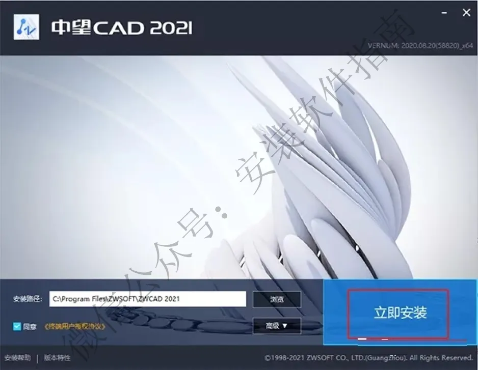 2.双击“ZWCAD_2021_Chs_Win_64bit.exe”依提示进行安装;