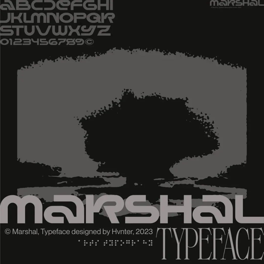 【免费下载】复古Y2K抽象艺术无衬线赛博科技西文装饰排版logo标题字体HVNTER – Marshal Typeface-第5155期-