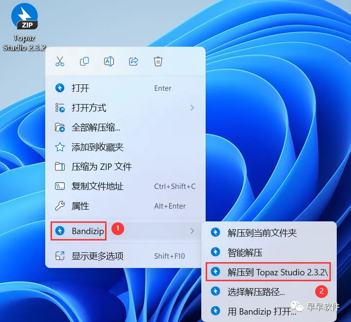 1、下载Topaz Studio 2.3.2软件安装包到电脑上,右键选择【解压到Topaz Studio 2.3.2\】