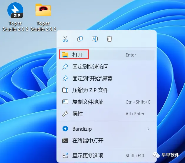 14、回到桌面,右键桌面上的【Topaz Studio软件图标】,点击【打开】