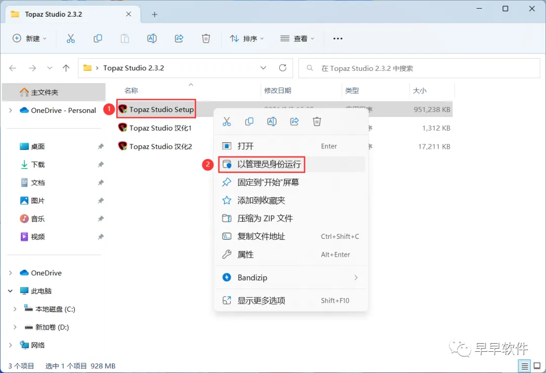 3、找到【Topaz Studio Setup】应用程序,右键选择【以管理员身份运行】它