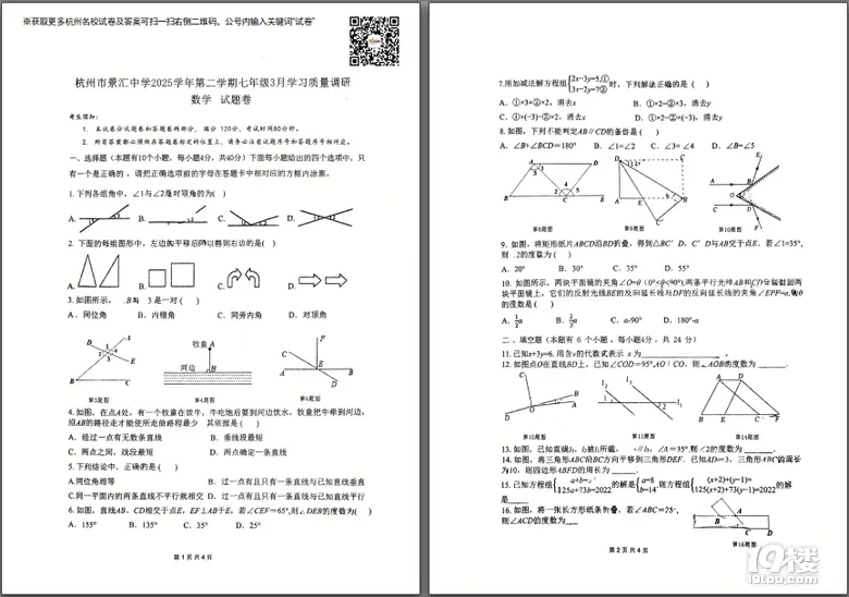 今天为大家准备的是家长上传的景汇中学七下月考数学试卷,获取试卷完整电子版pdf免费下载及参考答案分析请点击文中的小程序!