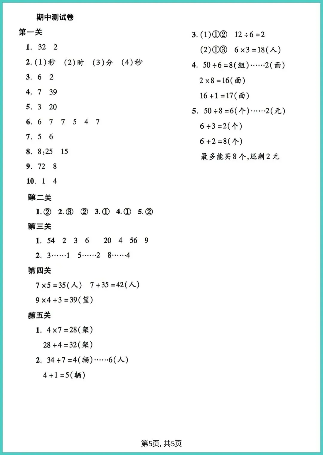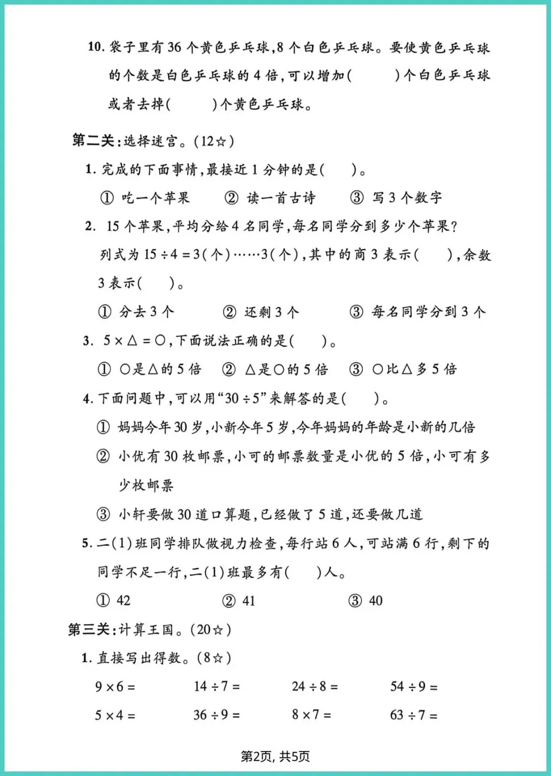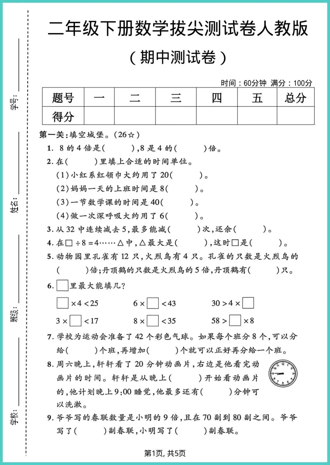 【免费下载】二年级(下)数学_期中拔尖测试卷《人教版》 | PDF完整高清电子版可打印